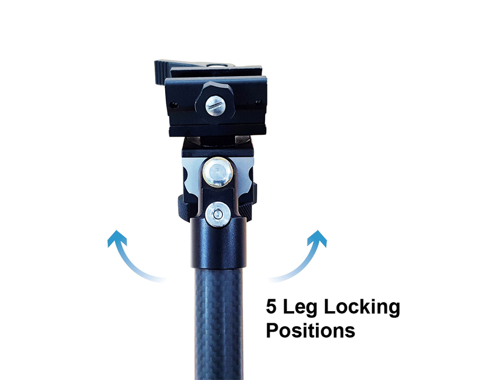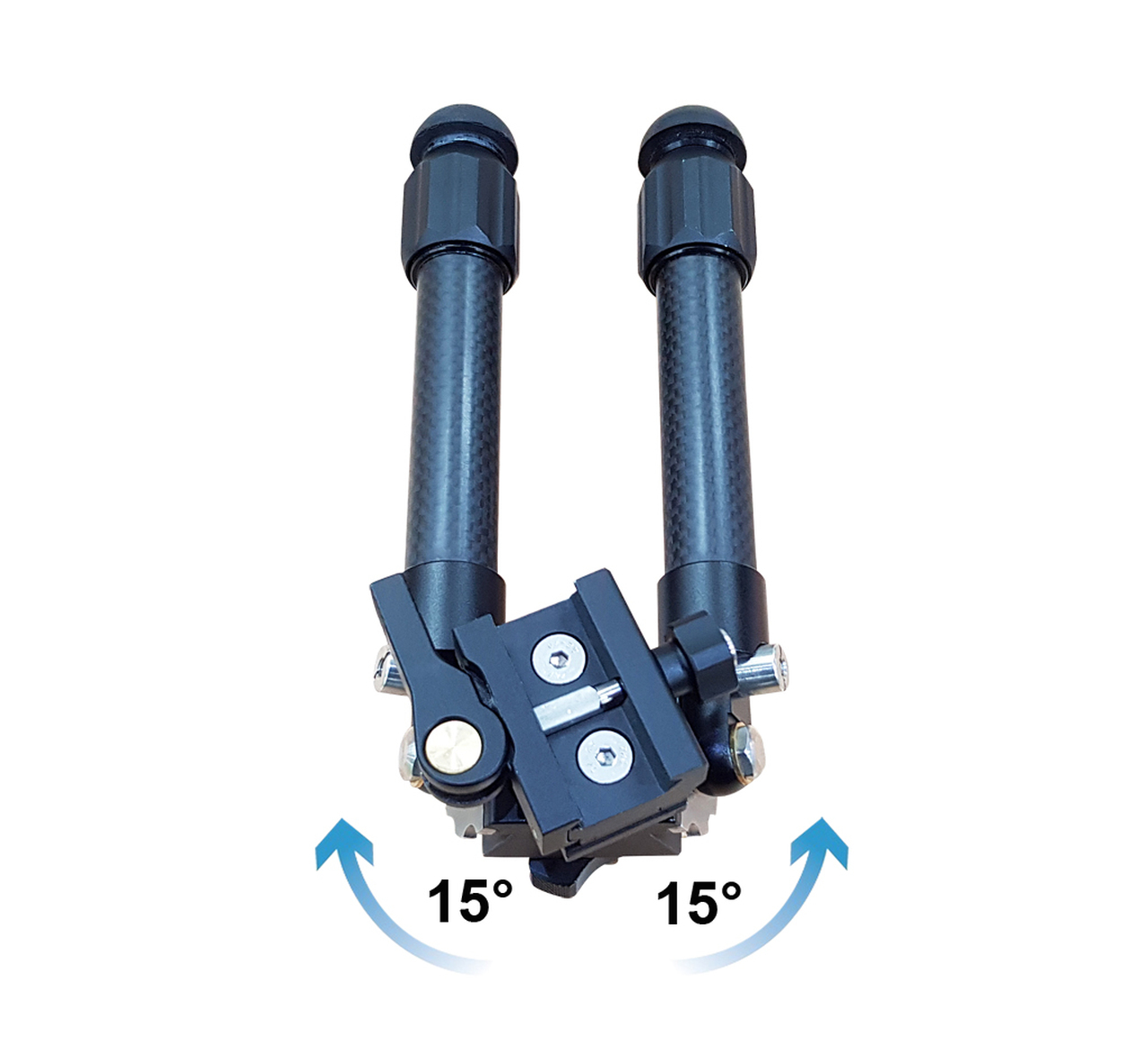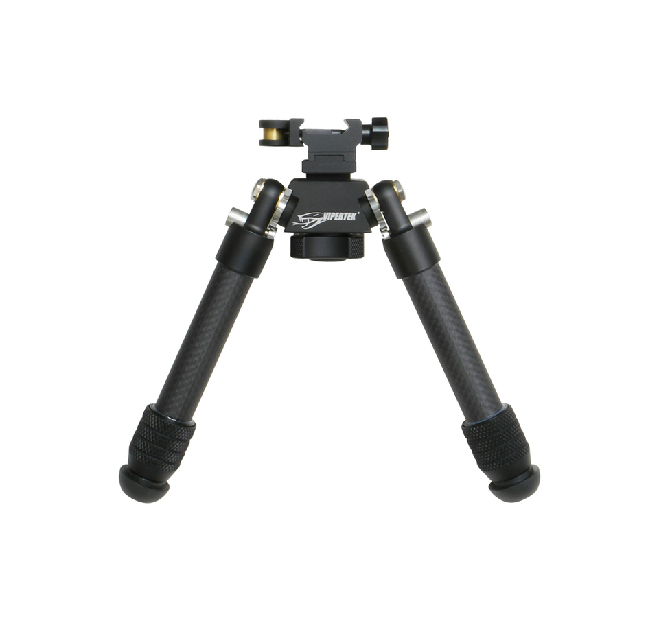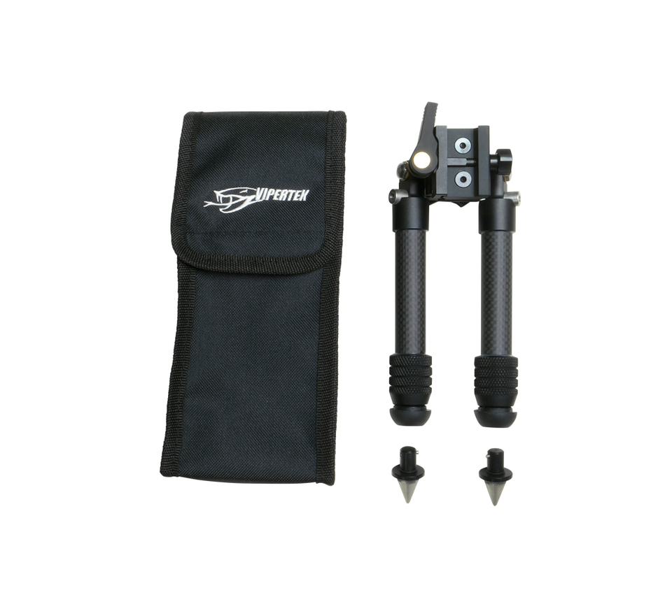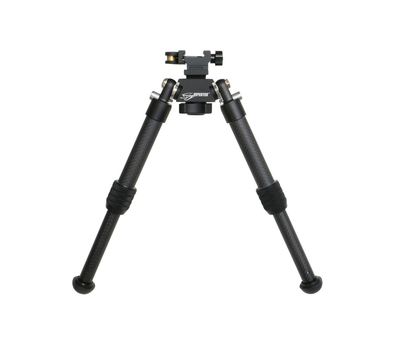 Vipertek carbon fiber bipod offers a variety of possibilities and user friendliness. The bipod is able to tilt and pan as well as lock off when the desired position is achieved, allowing a very rigid support for the shooter. The legs are extendable to achieve a height of 7 inches to 10 inches and can be positioned in any 5 positions, this also allows the feet to be further forward in relation to the mounting position.